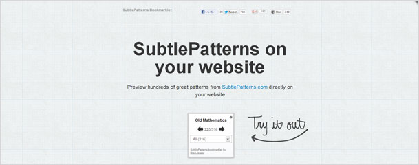 自サイトに壁紙を実装するシュミレーション付のジェネレーター SubtlePatterns Bookmarklet